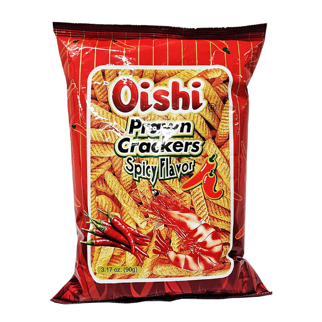Oishi Spicy Prawn Crackers are delicious and crunchy snack made with natural prawn extract and infused with a spicy kick. The Spicy Prawn Crackers have a distinct seafood taste that is enhanced by the natural shrimps used in its production.