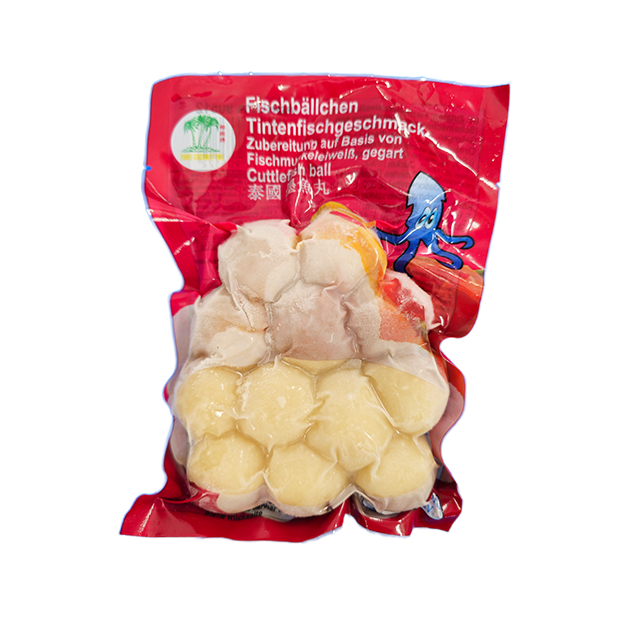 Ingredients: Fish muscle protein 53.91% (Bream nemipterus spp.) Captured: FAO no. 71 Pacific, water, octopus 13.79% (sepia pharanis) caught: FAO. Pacific Ocean, thickeners (E1412), sugar, salt, refined palm fat and oil, antioxidant (E320 E321), cheese, wheat gluten, egg albumin powder, flavor enhancers (E621, E627, E331), stabilizers (E 450 (iii), E451 (i) ), E170 (i), E 327, garlic.
