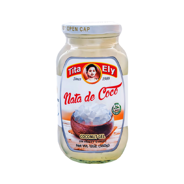 A chewy, jelly-like translucent food produced by the fermentation of coconut water. Made from fresh coconut gel that was cooked to attain smooth and tender gel. It contributes to a healthy diet because it contains low calories and good fiber. Preserved and packed with extra heavy syrup.